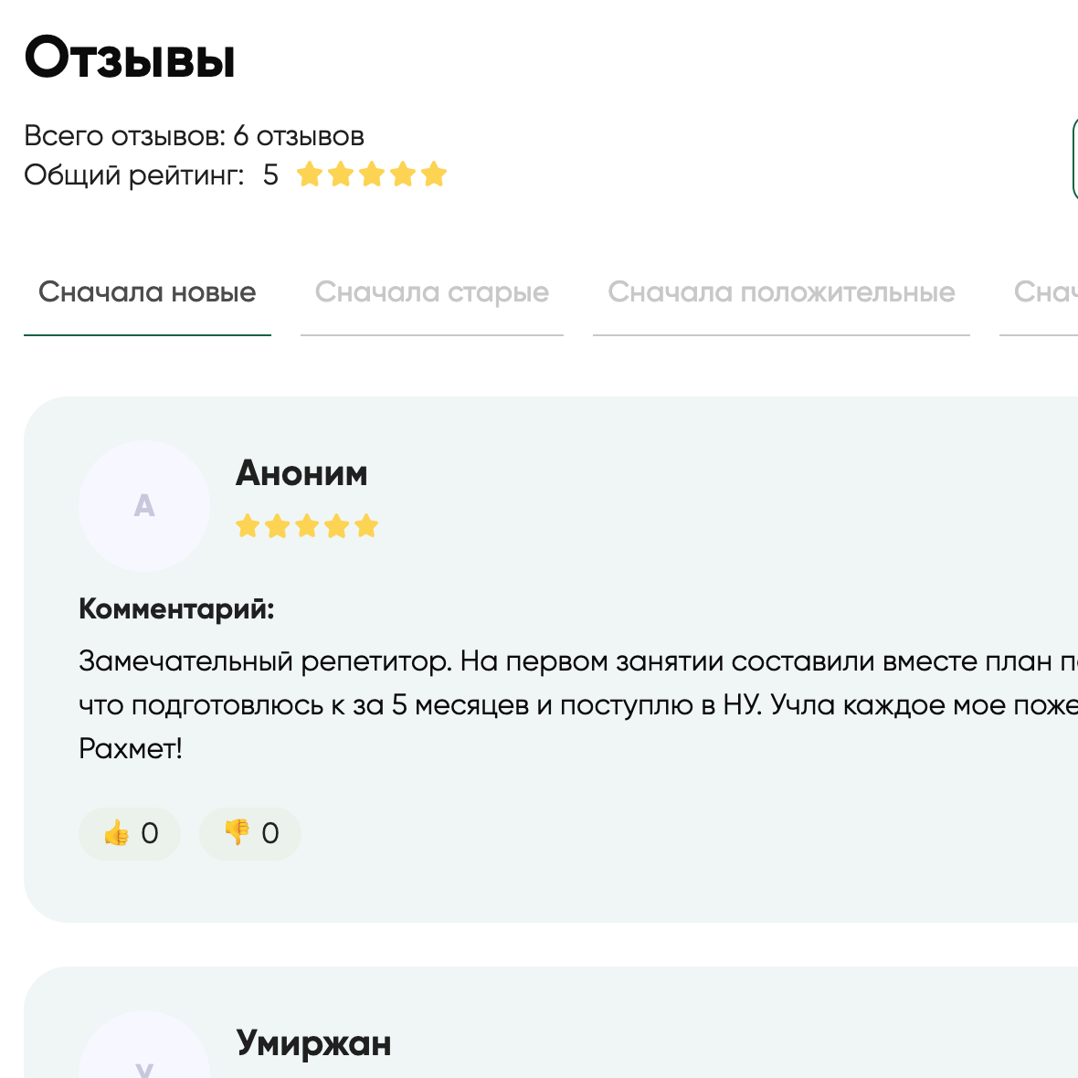 Біз әрбір репетитор туралы пікірді тексереміз — оларды тек нақты клиенттер қалдыра алады, сондықтан Tutors.kz пікірлеріне сенуге болады.