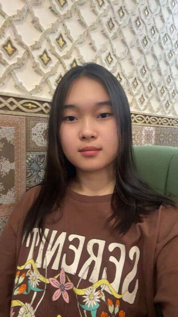 Привет! Меня зовут Сагыныш. Я учусь в международном колледже, где все предметы ведутся на английском языке.